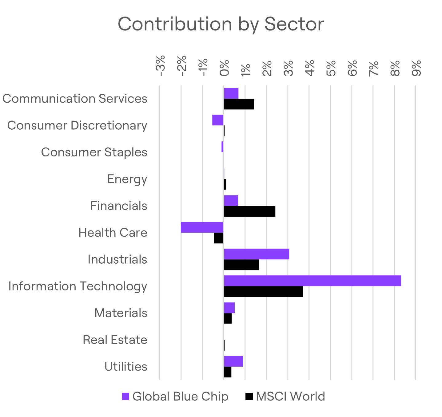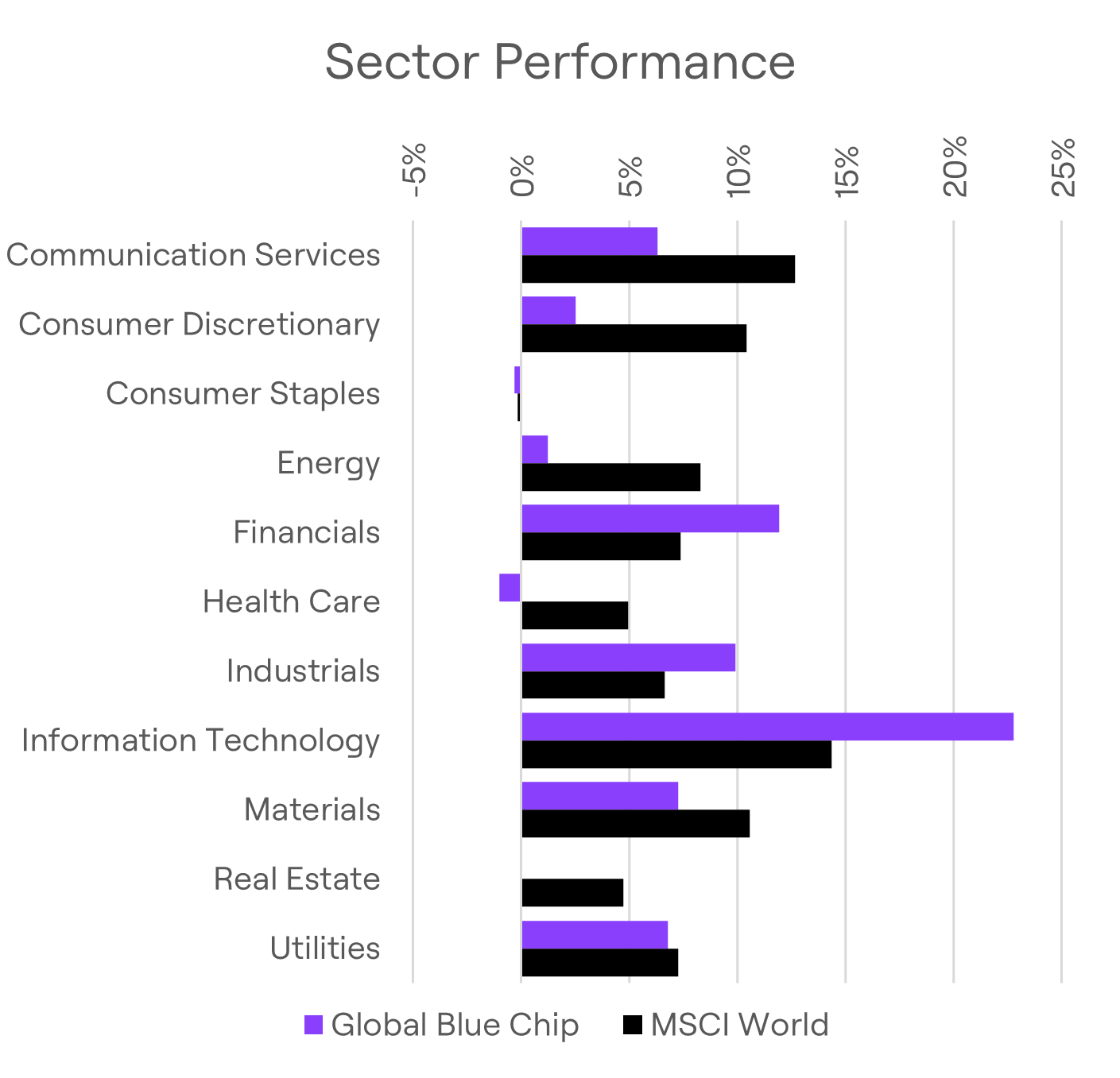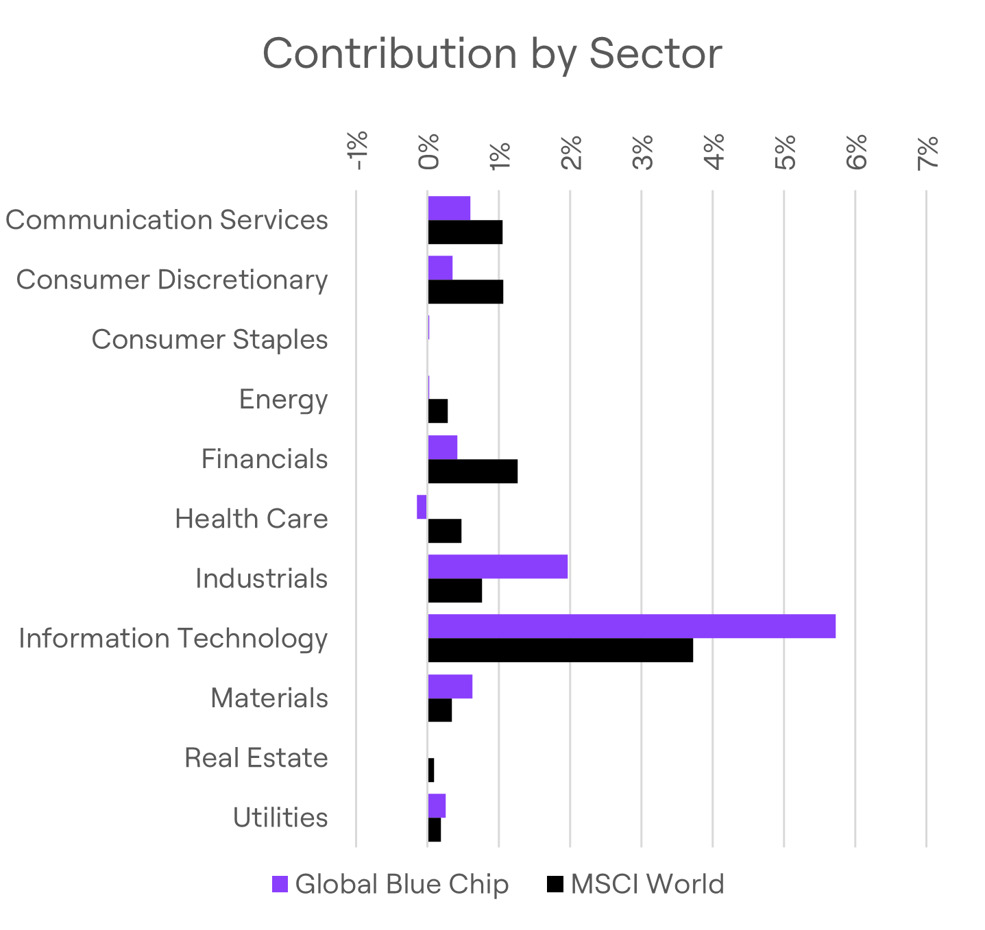 Year-to-date, the MSCI World Index has returned 9.61%, while Global Blue Chip has gained 11.62%, outperforming by 2%. This turnaround - from a 1.75% deficit in Q1 - reflects both decisive stock selection and our willingness to adapt. We’ve rotated away from laggards and concentrated exposure in higher-conviction themes, such as AI infrastructure, e-commerce, basic materials and capital goods.