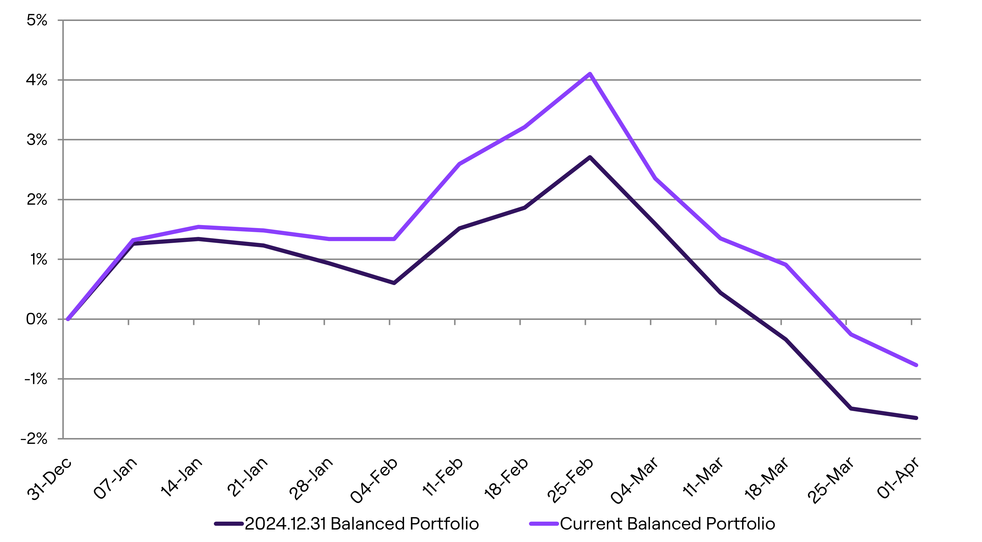 Against this backdrop, we have been pleased with how portfolios have performed. The changes we made at the end of January have allowed us to participate in the early strength in markets while also providing a degree of resilience through the subsequent volatility. This has resulted in meaningful outperformance during what has been a challenging period, as the chart in this report illustrates.